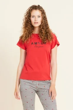Camicia da notte cotone marta manica corta con stampa a pois dettagli in pizzo e scollo serafino profondo e abbottonatura nascosta