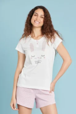Pigiama donna cotone watermelon top spalla larga con pantalone corto con stampa vichy