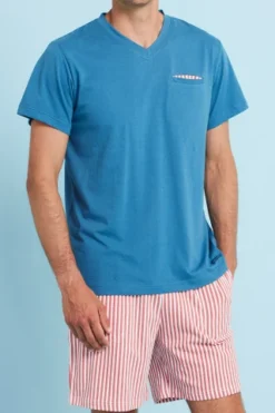 Pigiama uomo caldo cotone martin pantalone blu con stampa a righe senza polsino e top abbottonato con stampa a righe blu