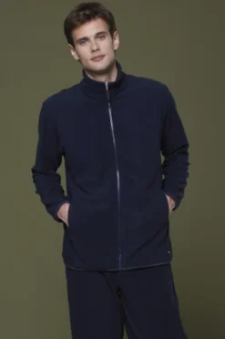 Pigiama uomo cotone never top taglio raglan manica corta e pantalone corto tinta unita blu con tasche laterali