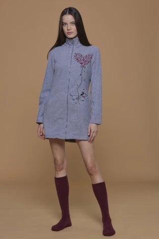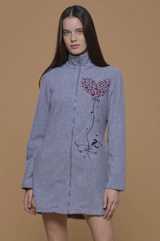 Vestaglia donna micropile my love con tasche laterali chiusura zip e applicazione